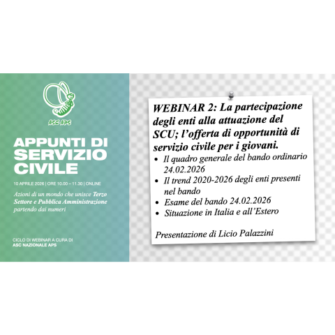 Il ciclo di webinar promosso da ASC Nazionale APS prosegue il 10 aprile con un'analisi dei programmi e dei progetti a bando.