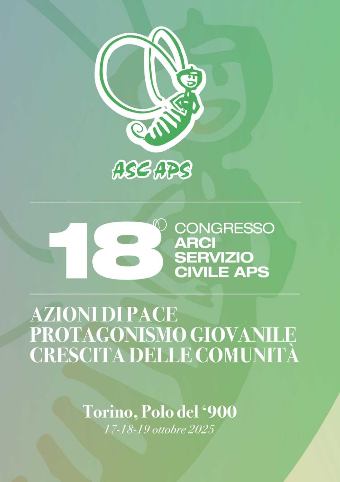 Dal 17 al 19 ottobre 2025, Torino ospiterà il 18° Congresso Nazionale di Arci Servizio Civile APS presso il Polo del '900. Tre giornate intense di confronto, riflessione e partecipazione che vedranno riunitɜ delegatɜ, istituzioni, organizzazioni partner per discutere delle sfide e delle opportunità che attendono la più grande rete associativa italiana dedicata al servizio civile, che si concluderanno con il rinnovo degli organi dirigenti.