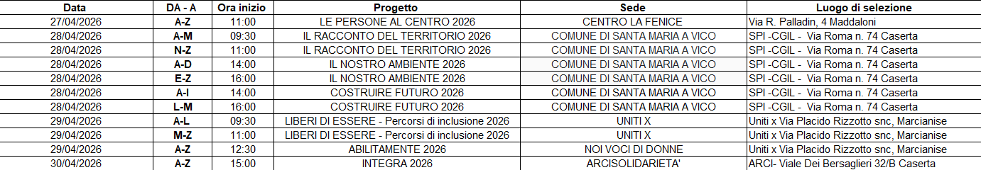 Si ricorda che “La pubblicazione del calendario ha valore di notifica della convocazione a tutti gli effetti di legge e il candidato che, pur avendo inoltrato la domanda, non si presenti al colloquio nei giorni stabiliti, senza giustificato motivo, sarà da considerarsi escluso dalla selezione per non aver completato la relativa procedura.” (Art. 6 del Bando SCU 2026)