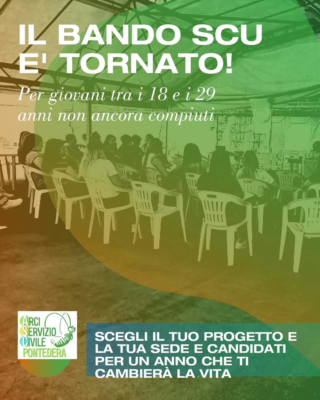 Arci Servizio Civile Pontedera partecipa al bando nazionale attraverso la propria rete associativa, che comprende Enti del Terzo Settore ed alcuni comuni della Valdera.