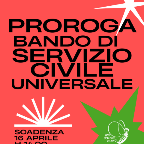 PROROGA BANDO SERVIZIO CIVILE UNIVERSALE 2026Ultima chiamata… anzi no! Hai più tempo per candidarti! Il bando del servizio civile universale 2026 è stato prorogato fino al 16 Aprile 2026! ✨