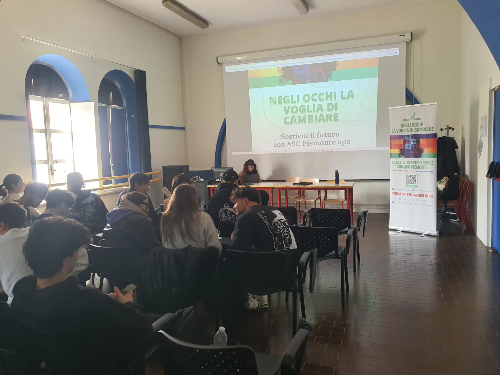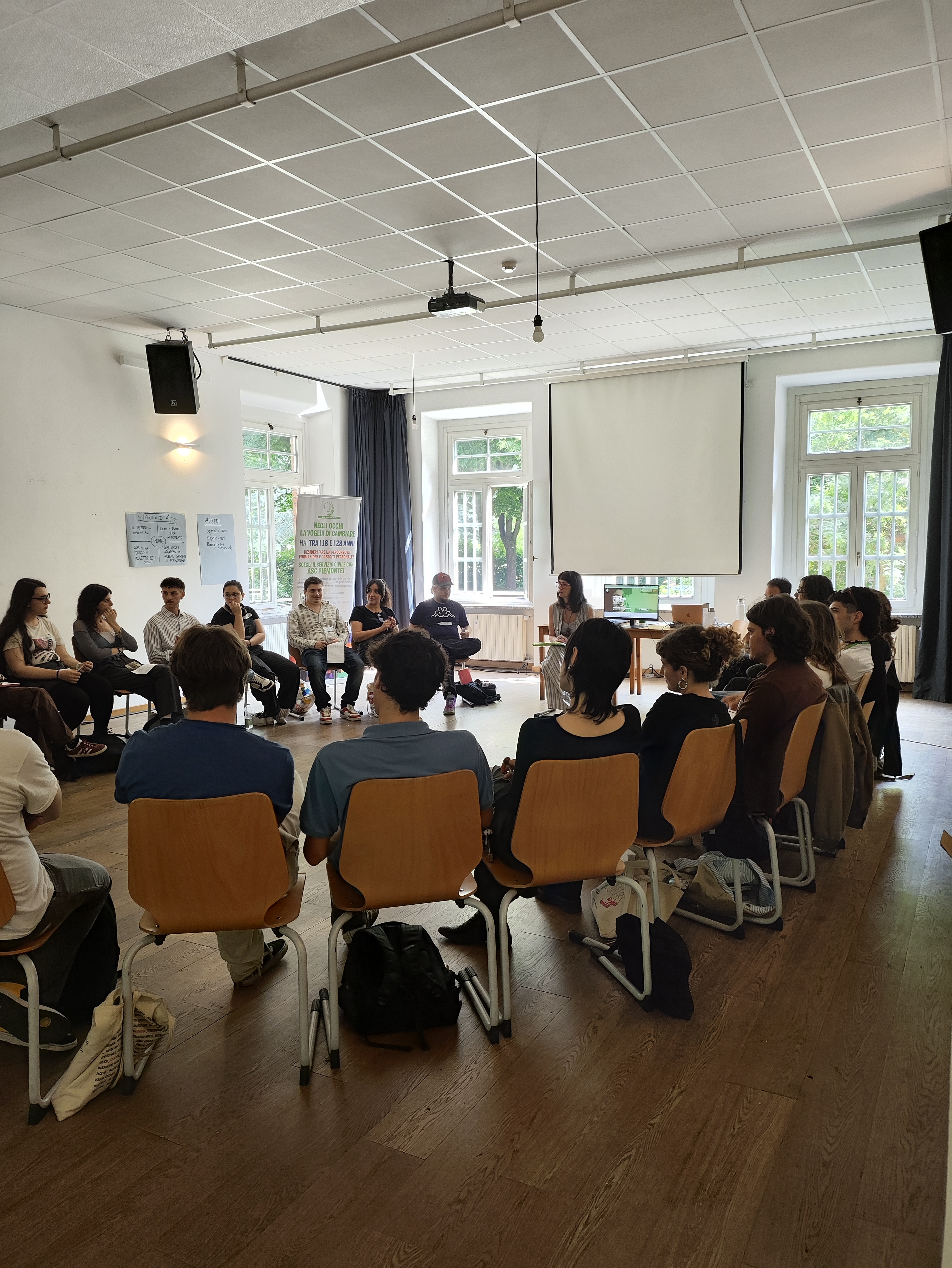 Abbiamo anche organizzato eventi di promozione SCU all’interno delle scuole, come negli Istituti di istruzione superiore “Stainer” e “Avogadro” di Torino. Gli incontri hanno rappresentato un’occasione per riflettere sulle prospettive post-diploma, ma anche sui temi della pace, della partecipazione attiva e del volontariato. La metodologia adottata è stata quella tipica dell’educazione non formale, con attività interattive finalizzate a stimolare il ragionamento e la condivisione di idee, affiancate da un momento conclusivo più