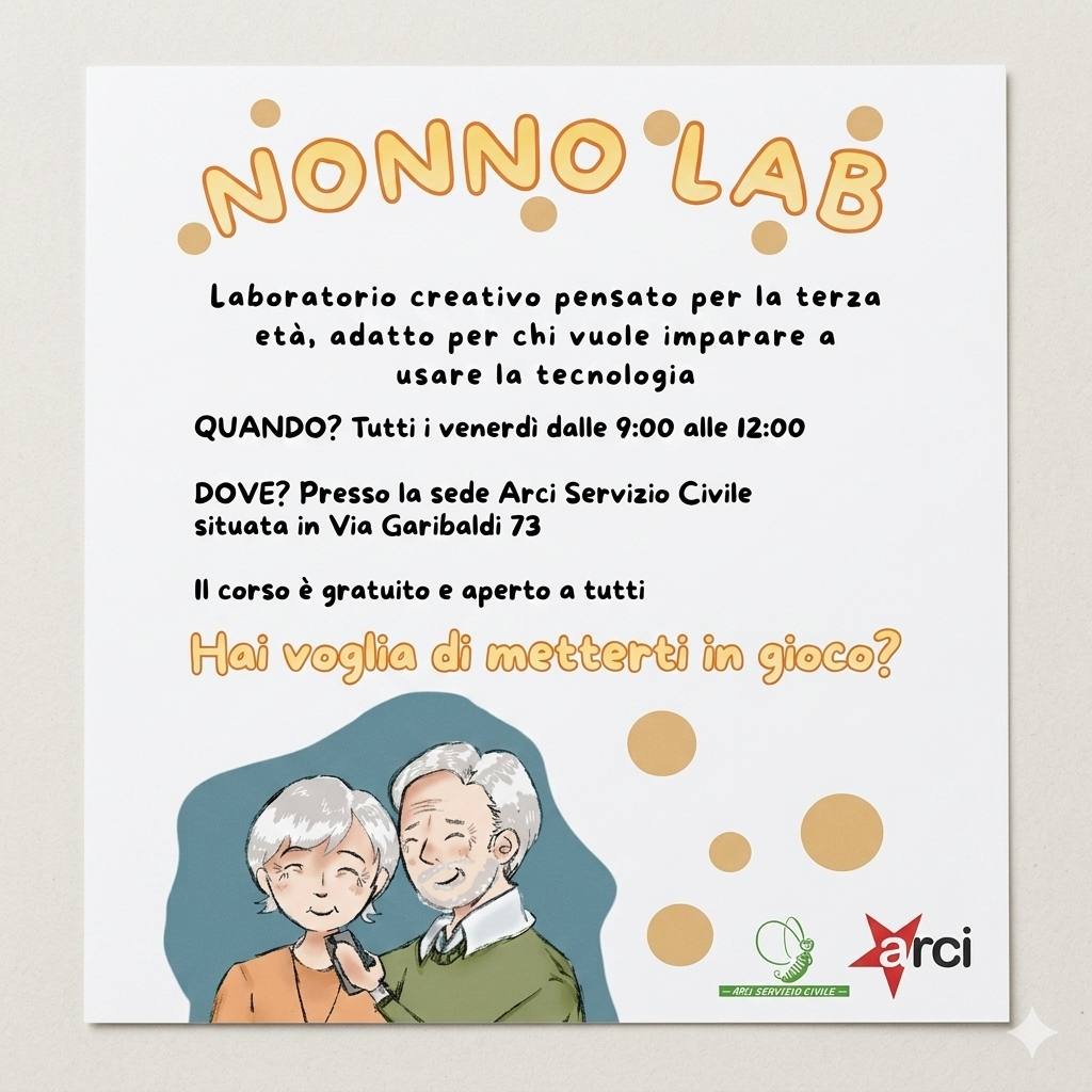 Hai mai visto tuo nonno lottare con un "messaggino" o tua nonna confusa dalle videochiamate? È ora di cambiare le cose! Arriva Nonno Lab, il laboratorio creativo dove la terza età incontra il futuro. 🚀